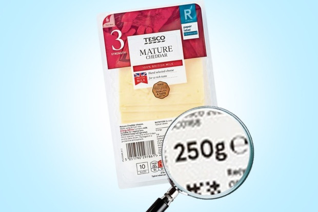 (写真)商品に大小文字の「e」が表示されていることに気づくでしょう。実際には数グラム多く得られる可能性があります。